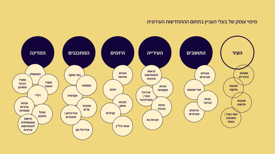 התחדשות עירונית עוסקת בחידוש ופיתוח העיר תוך מתן דגש על אזורים ישנים בערים והתאמתם לתקנים חדשים, לאסתטיקה ולאוכלוסייה העכשווית. בשטח, יזמים משתמשים במונח זה כדי למתג פרויקטי בניה חדשה, מחוץ לעיר, שלרוב נבנים כשכונות סגורות לאוכלוסיות ספציפיות בעלות יכולת כלכלית ובפועל מייצרות סגרגציה (הפרדה, חלוקה). בהיבט החברתי תמונת המצב היא של הישארות אוכלוסייה חלשה אל מול עזיבה של אוכלוסייה חזקה, מה שגרם להזנחה של מרכזי הערים. למרות שלאחרונה קיימת נכונות של העיריות לקדם את מרכזי הערים ולהוציא לפועל פרויקטים שמשפרים ומעצימים את העיר והתושבים, בשל הזנחה רבת שנים קיים אי אמון בין התושבים לעירייה. בהיבט המקצועי תמונת המצב מציגה פערים באופן ההתייחסות להתחדשות עירונית, דבר המוביל להיעדרה של שפה משותפת בין העירייה, התושבים והיזמים. מסיבות אלו קיים פער בהבנה של מהות הפרויקטים והקריטריונים לפרויקטים מיטיבים. הרשות להתחדשות עירונית זוהתה כנקודה להתערבות המזמנת יכולת השפעה ויצירת מהלכים מלווים ומקדמים לפרויקטי ההתחדשות העירונית יחד עם התאמתם למקומיות.